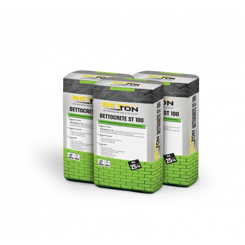 Bettocrete ST 100, çimwnto bazlı tek komponentli,fiber ilaveli,akıcı kıvamda, yüksek mukavemetli tamir harcıdır.
